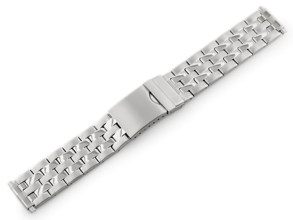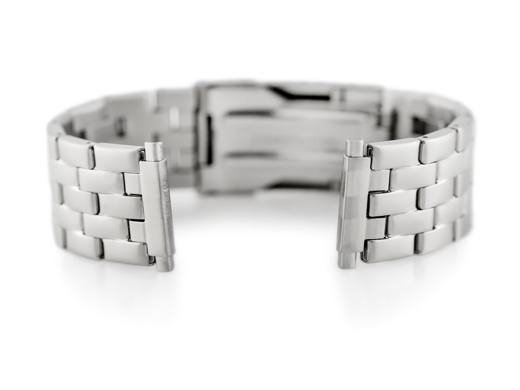 Ocelový náramek pro kvalitní hodinky ve stříbrné barvě s nastavitelným zapínáním šířka (nejlépe pasuje na šířku 20mm).