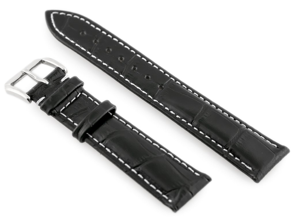 Kožený Řemínek K Hodinkám W64 - Černo/Bílý 18mm