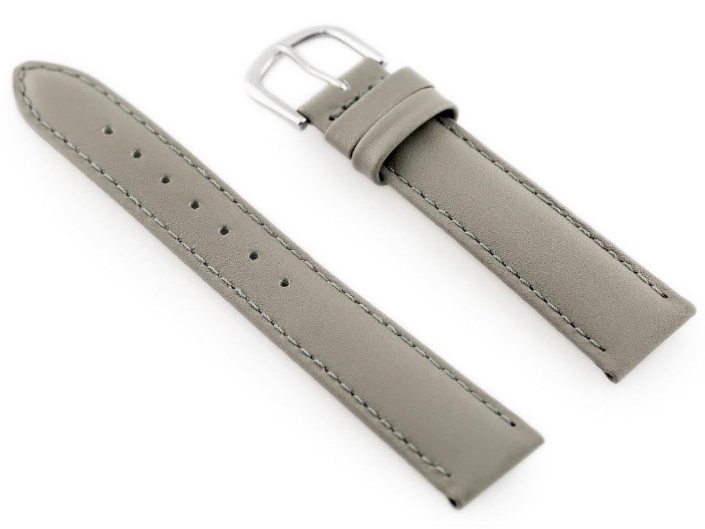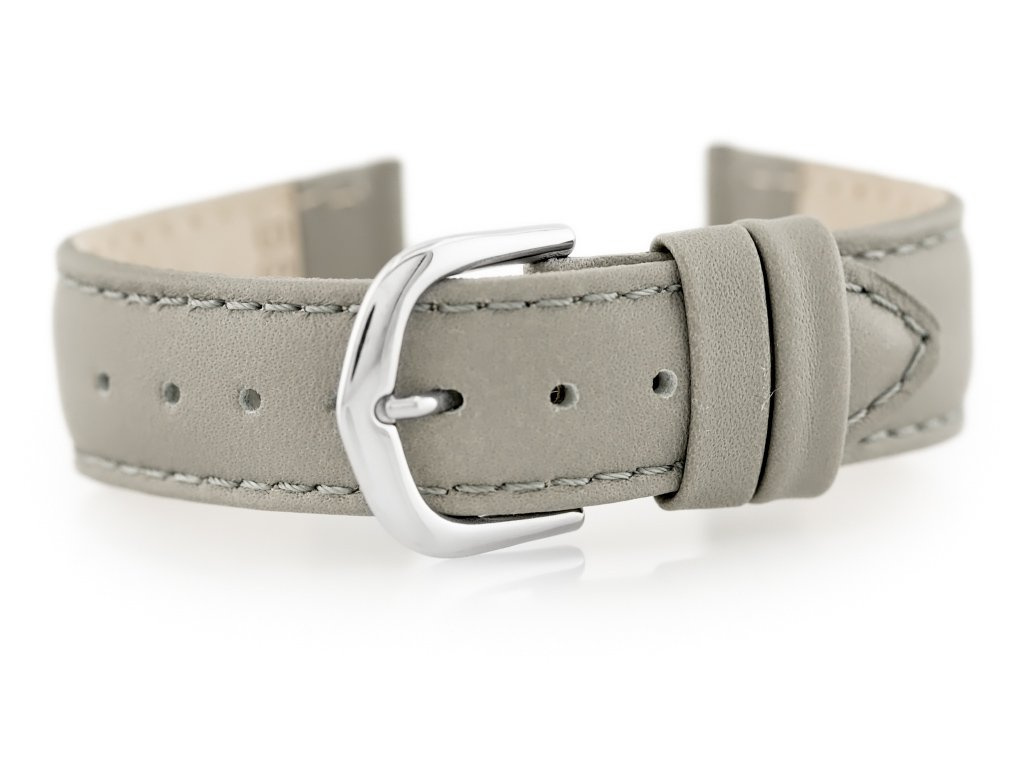 Přírodně šedý kožený pásek s šedým prošíváním. Spona z nerezové oceli ve stříbrné barvě.