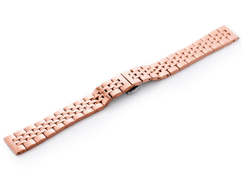Ocelový náramek s motýlkovou sponou pro kvalitní hodinky z růžového zlata.