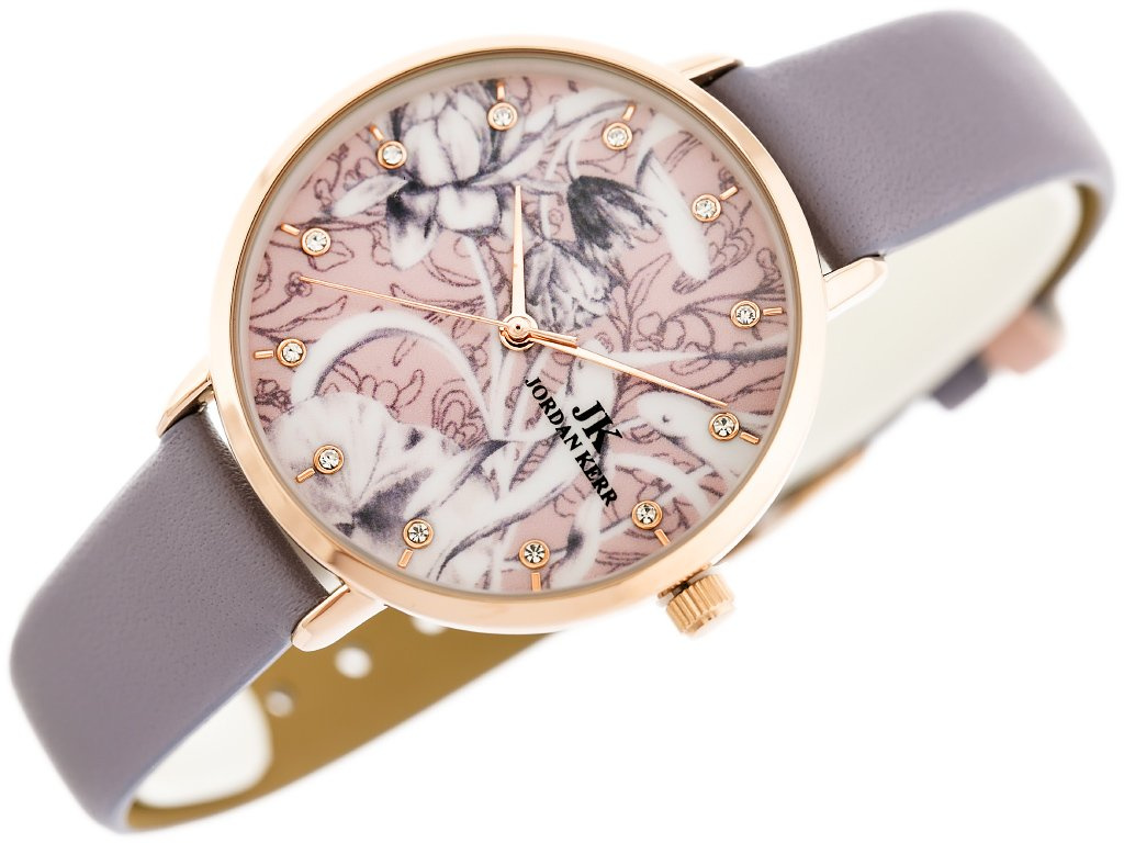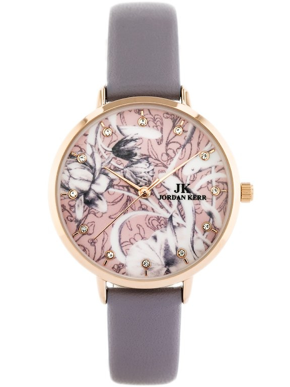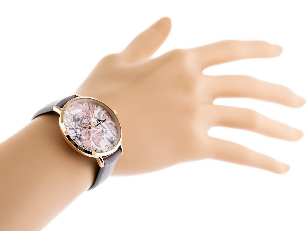- barevný ciferník bílý a růžovým květinovým vzorem