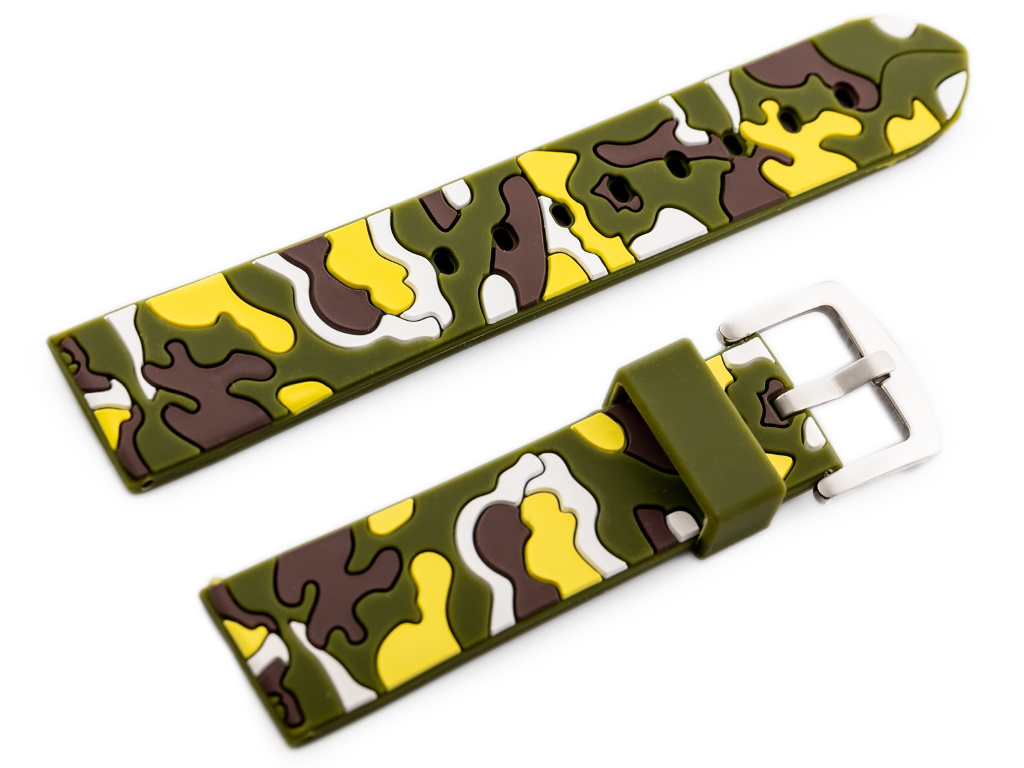 Gumový Řemínek Hodinek U13 - Olivový/Žlutý-Camo - 20mm