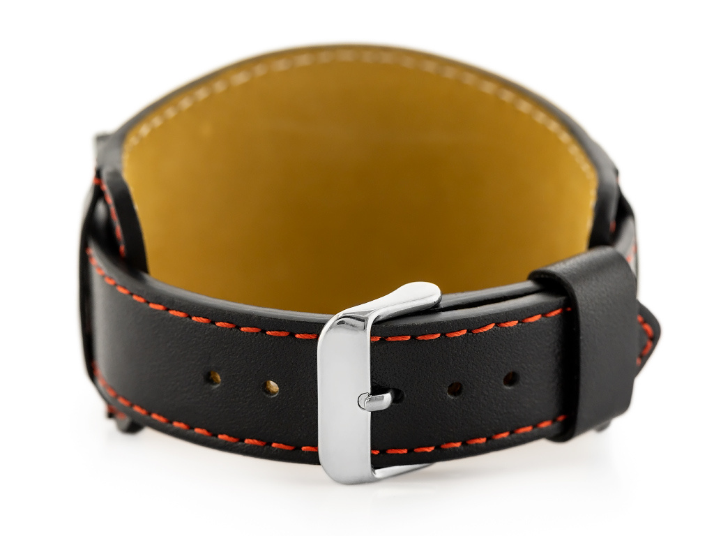 Kožený Řemínek K Hodinkám W85 - Podložka - Černá/Červená - 18mm