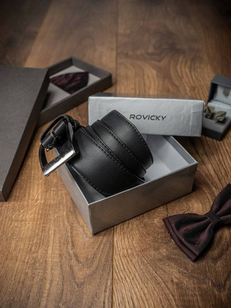 Klasický hladký pánský opasek s tradiční stříbrnou sponou - Rovicky
