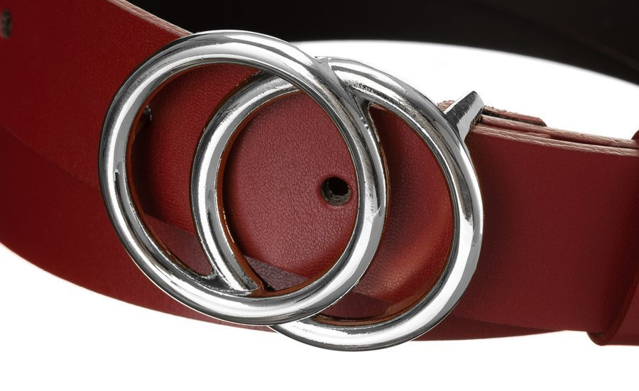 Hladký kožený dámský pásek se stříbrnou dvojitou přezkou