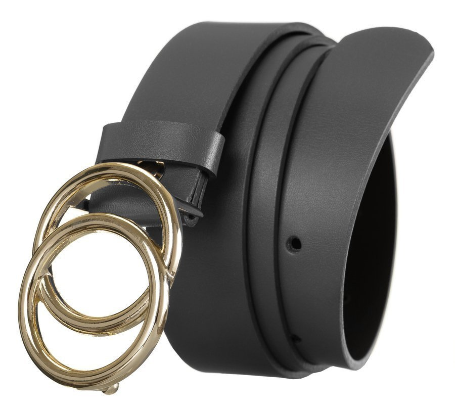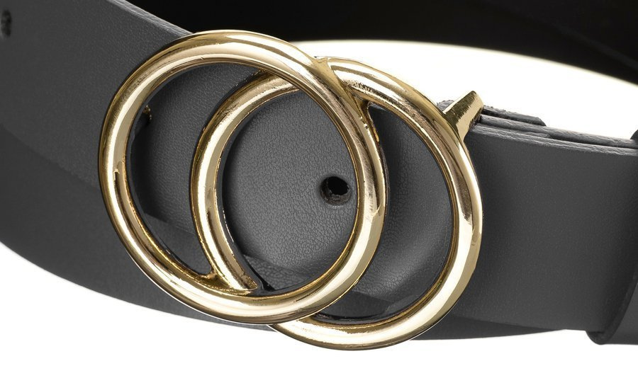 Hladký kožený dámský pásek se zlatou dvojitou přezkou