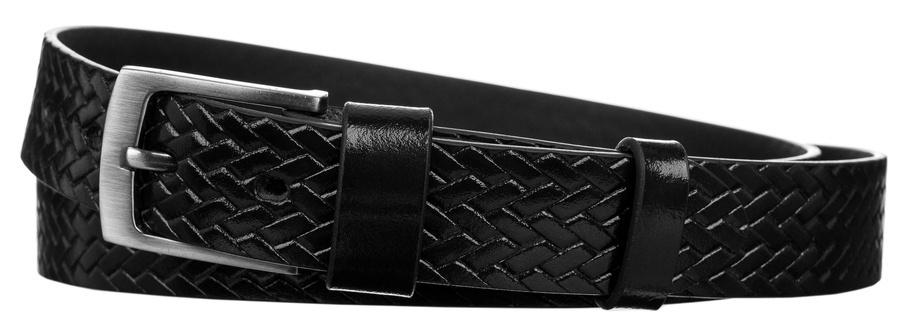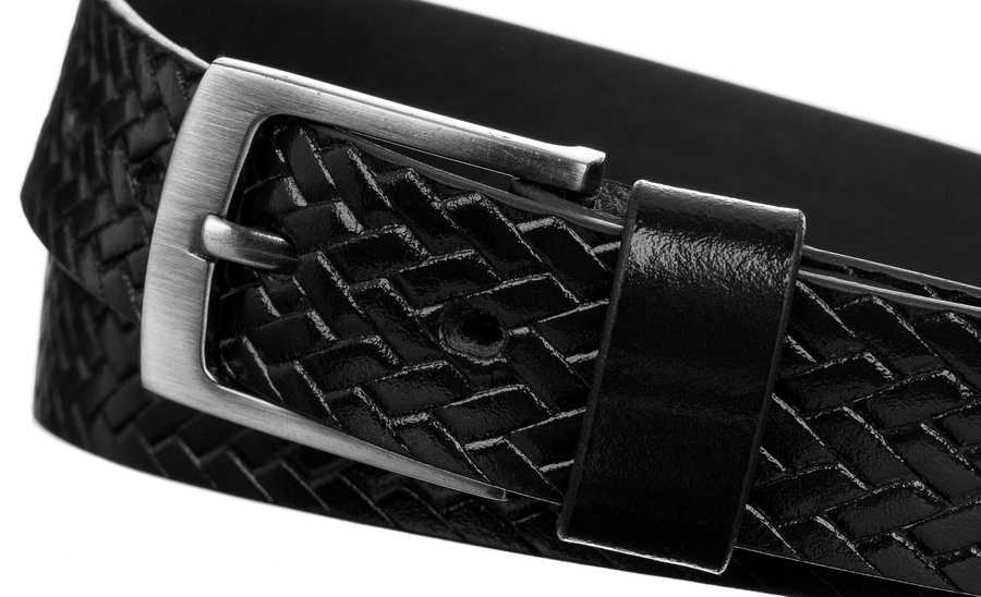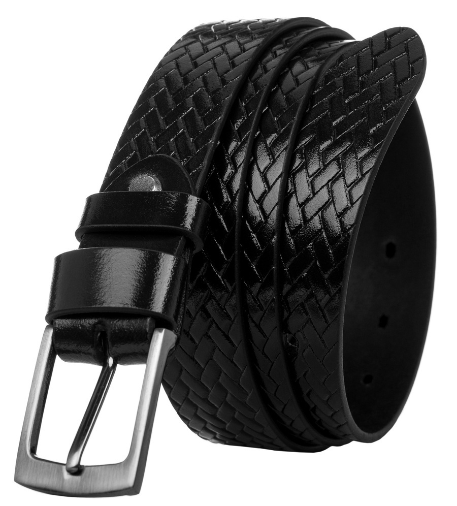 Pánský pásek z přírodní lícové kůže s copánkovým vzorem