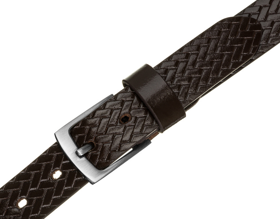 Pánský pásek z přírodní lícové kůže s copánkovým vzorem