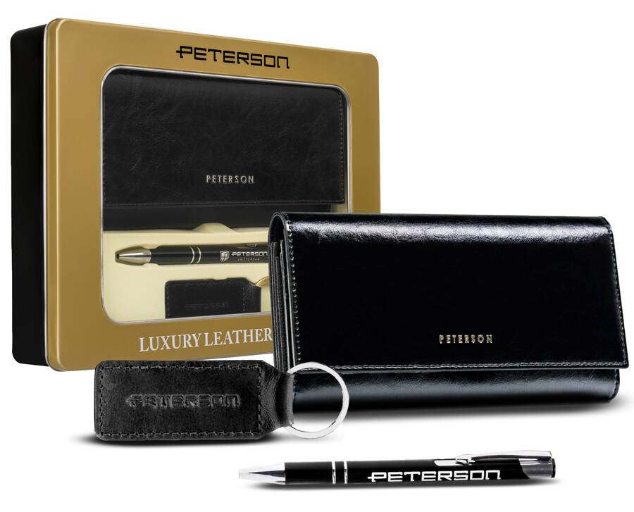 Dárková sada: dámská kožená peněženka, klíčenka a pero