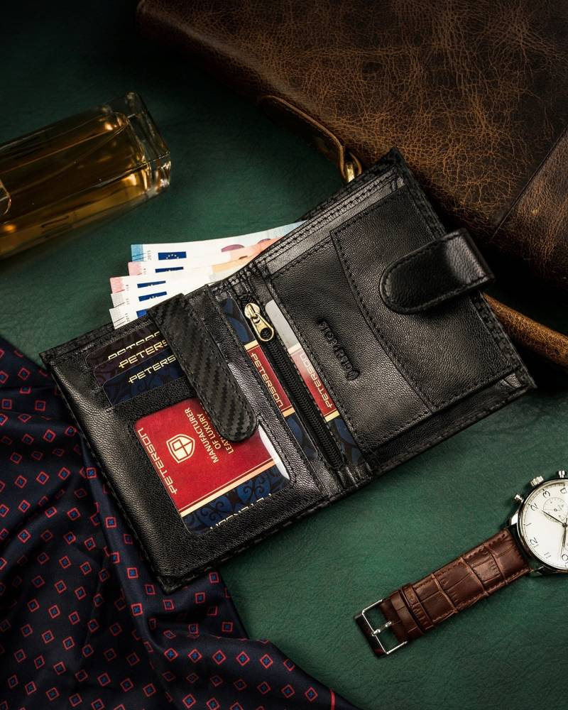 Pánská kožená peněženka s vertikální orientací se zapínáním na patent - Peterson
