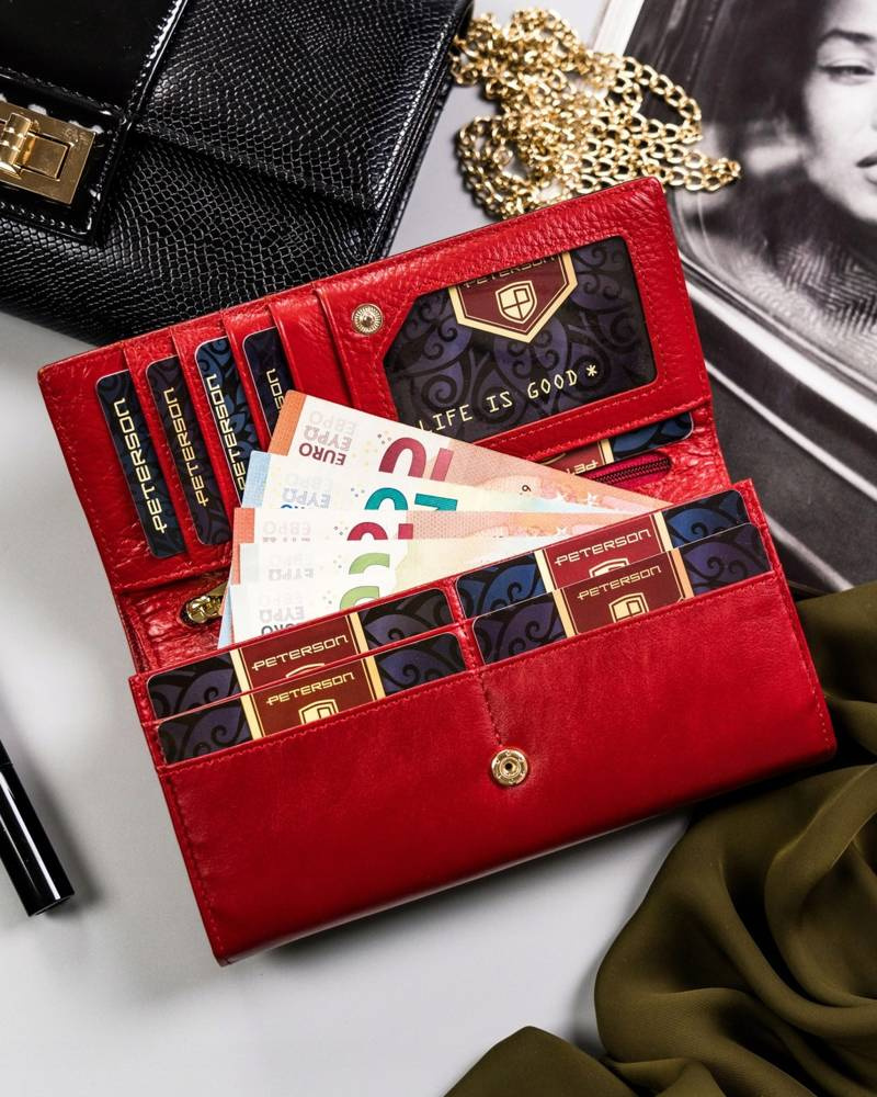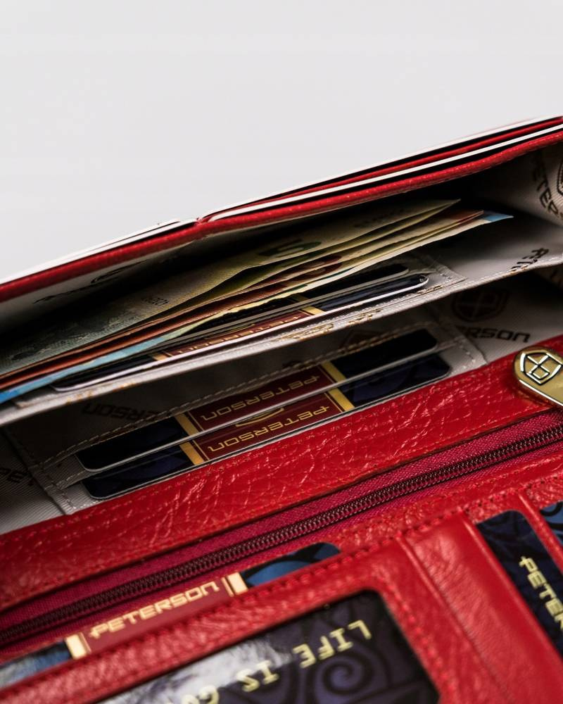 Velká, kožená dámská peněženka se zapínáním na karabinu