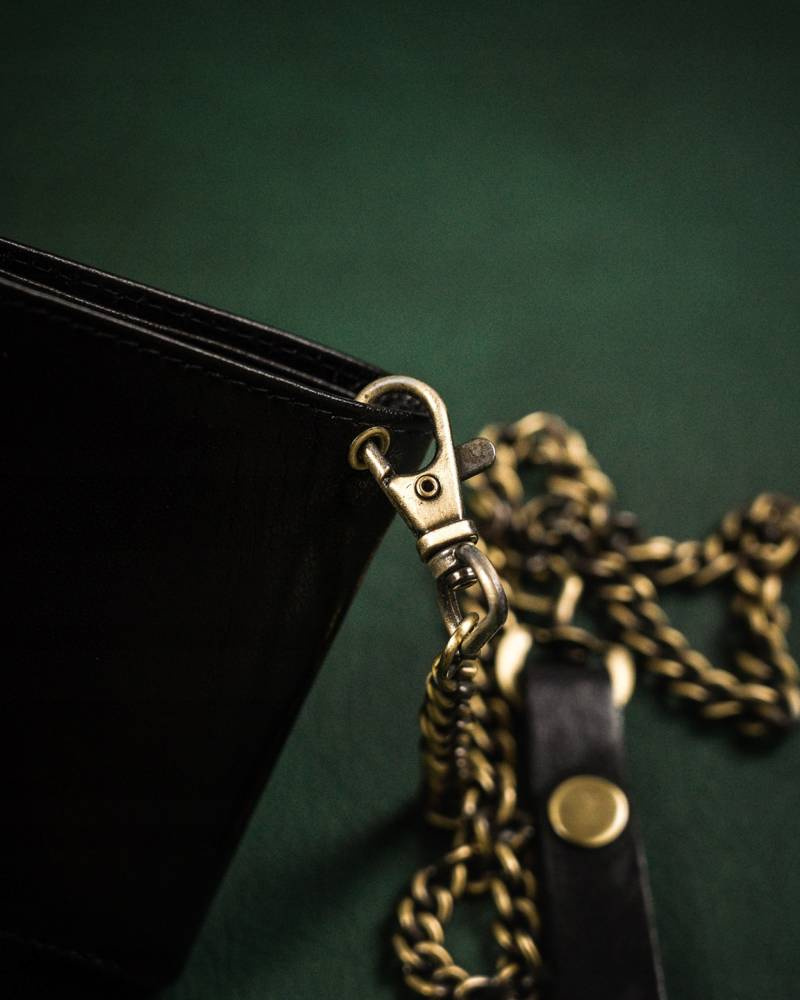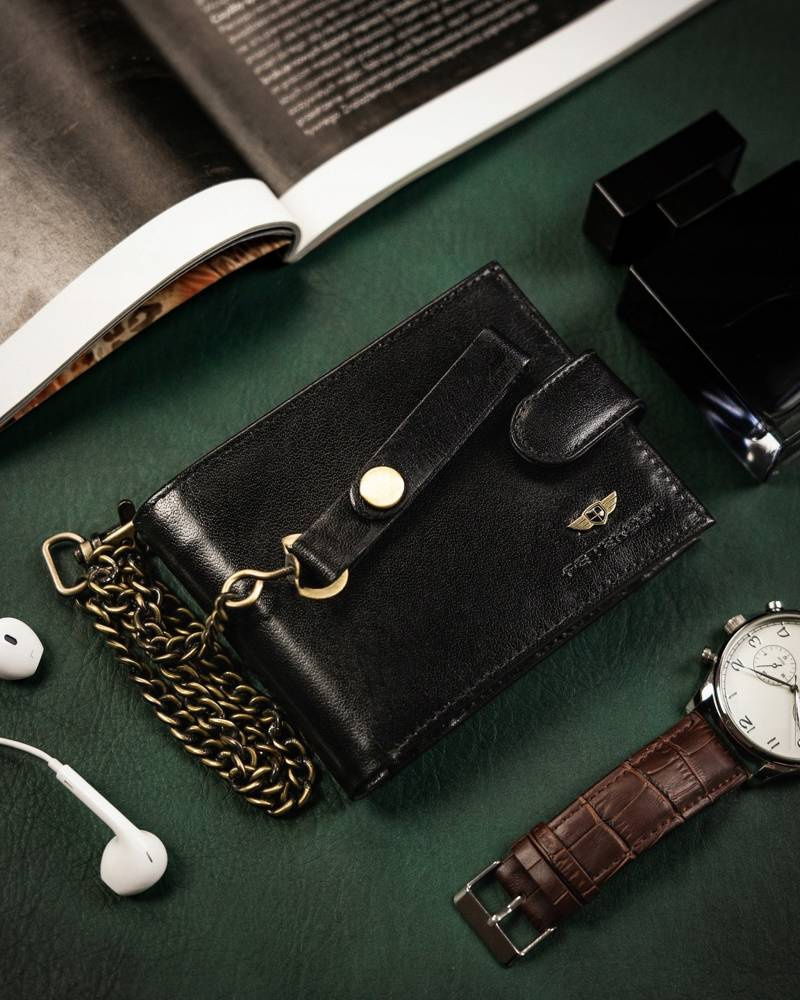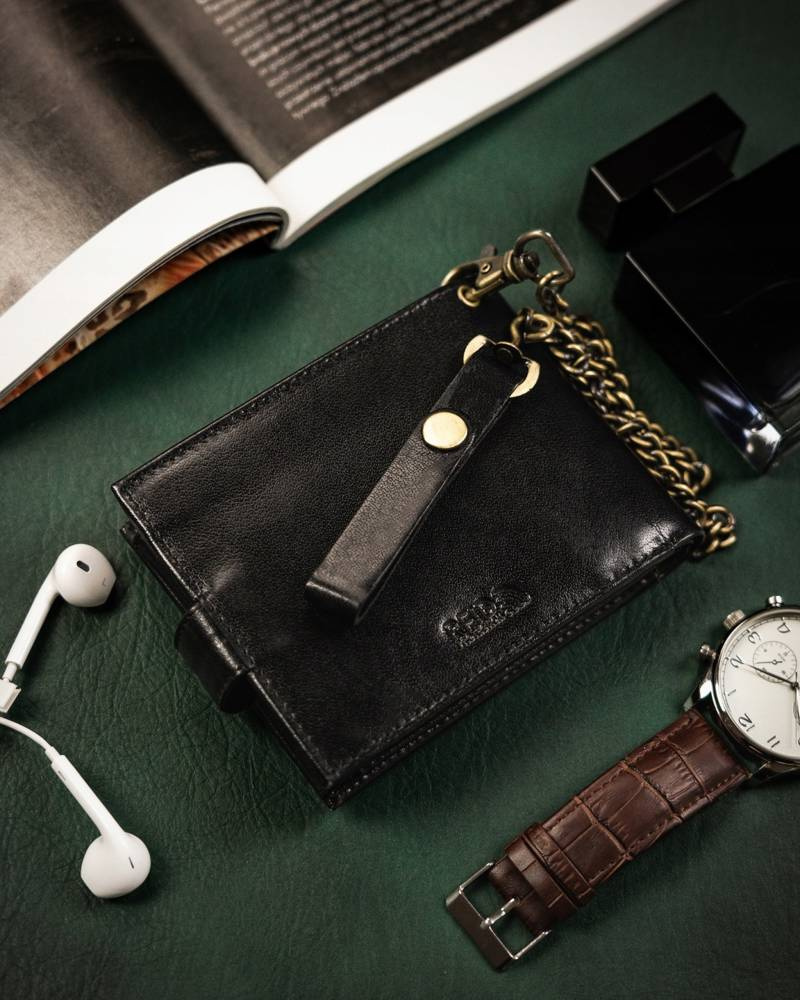 Horizontální pánská peněženka z přírodní kůže s řetízkem