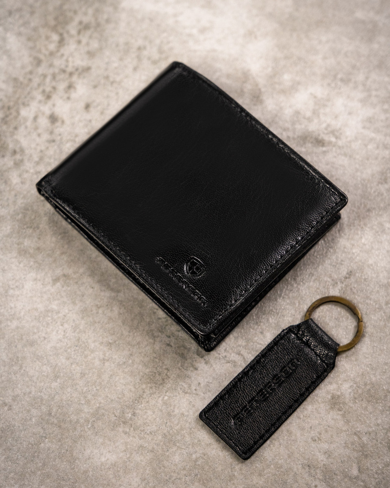 Dárková sada: kůže, střední pánská peněženka a klíčenka