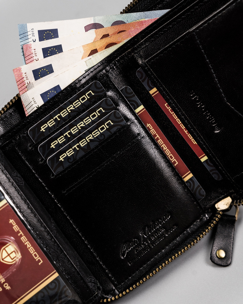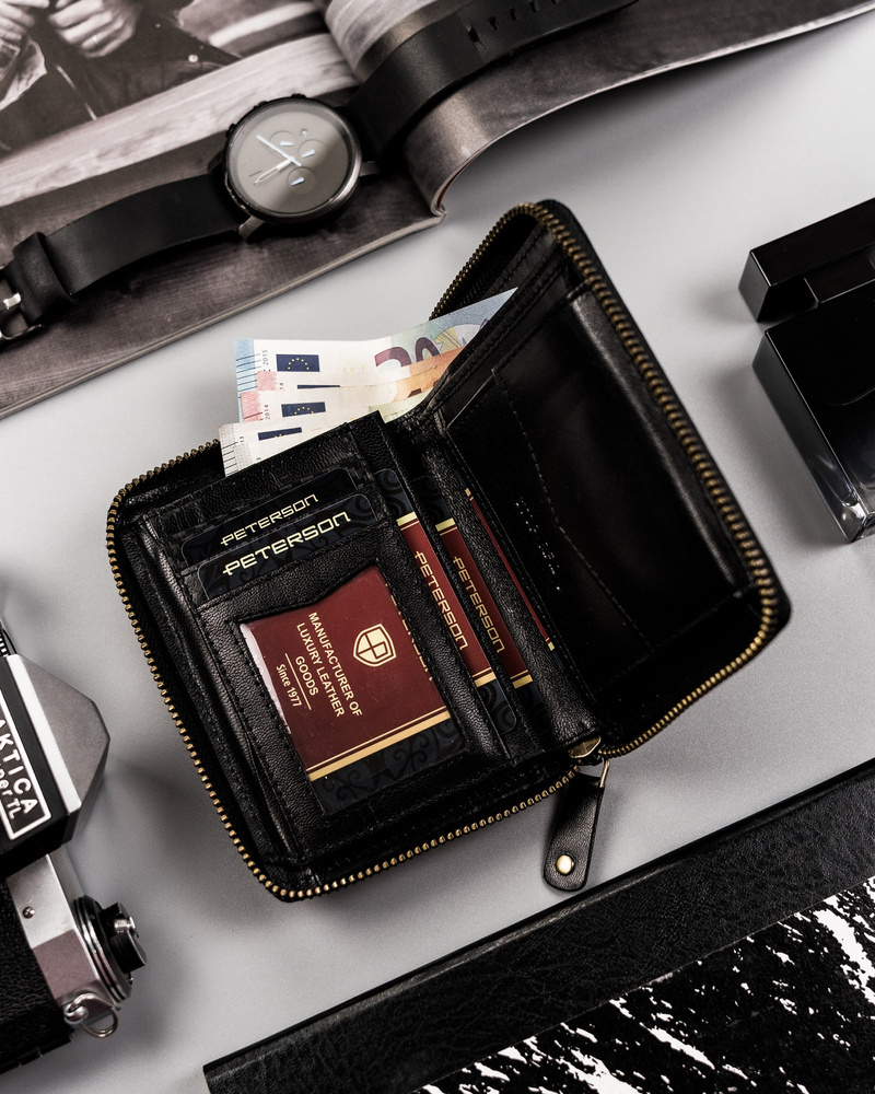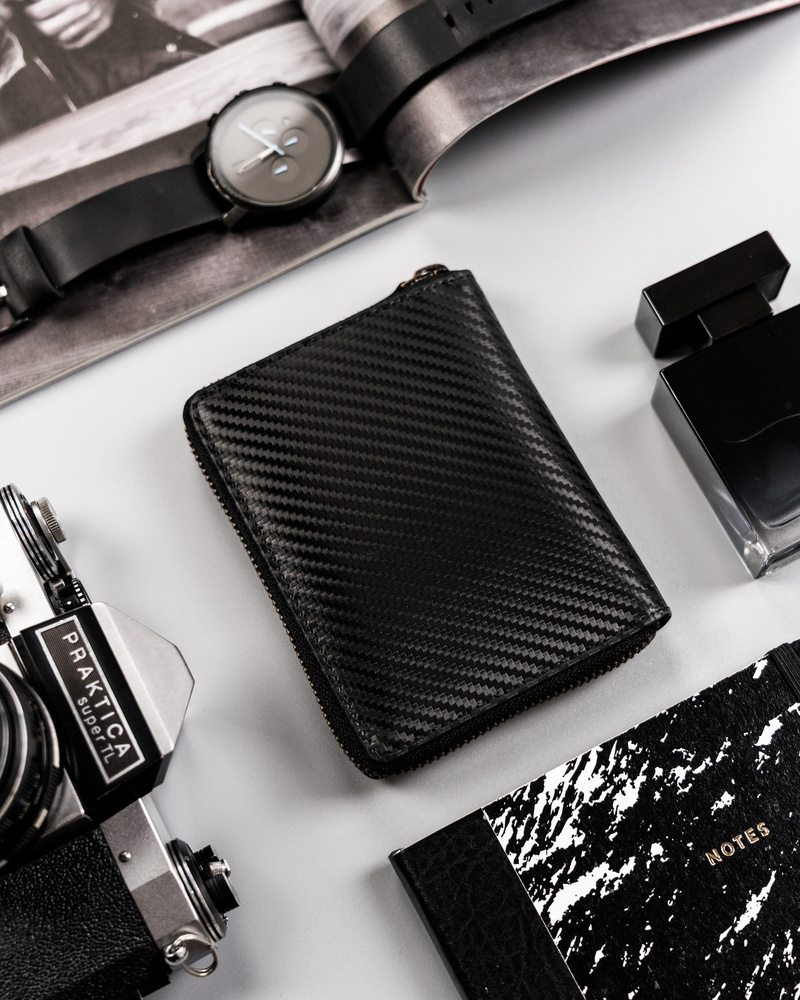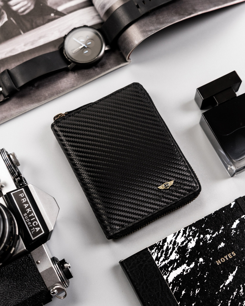 Kožená peněženka se zipem a karbonovým potahem