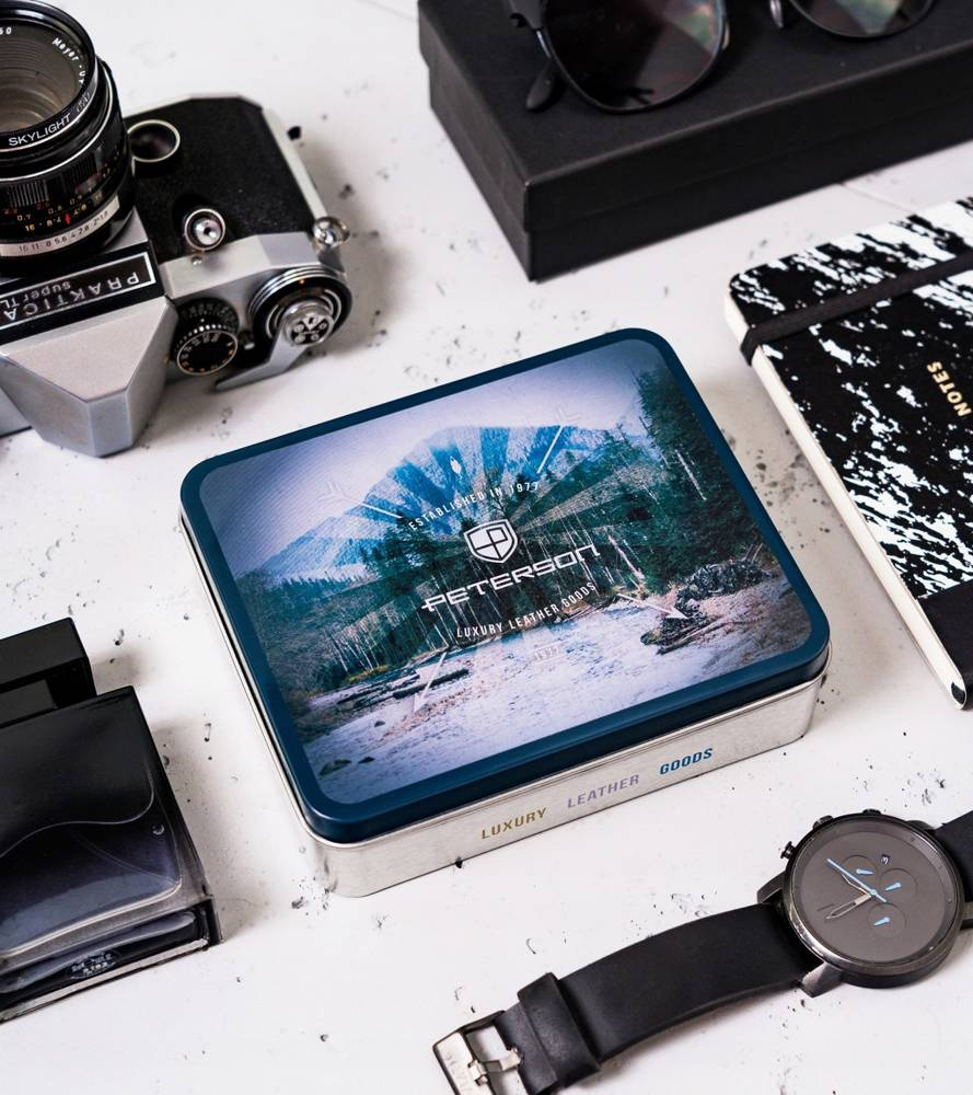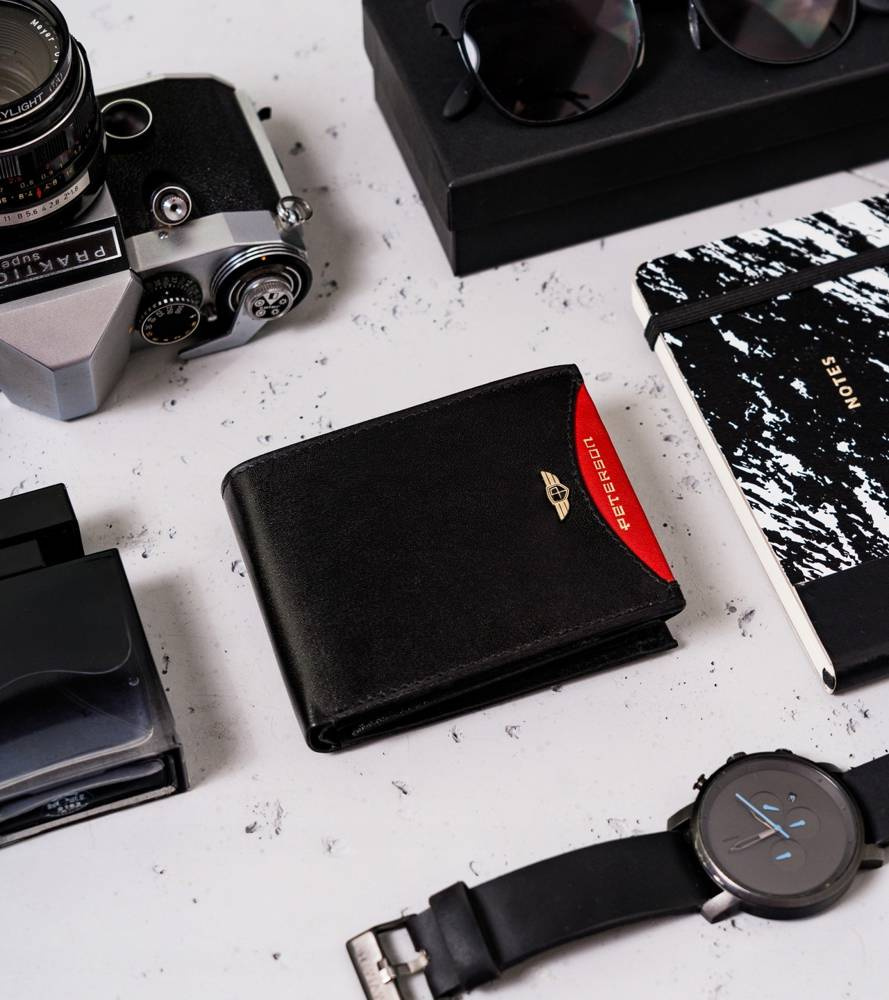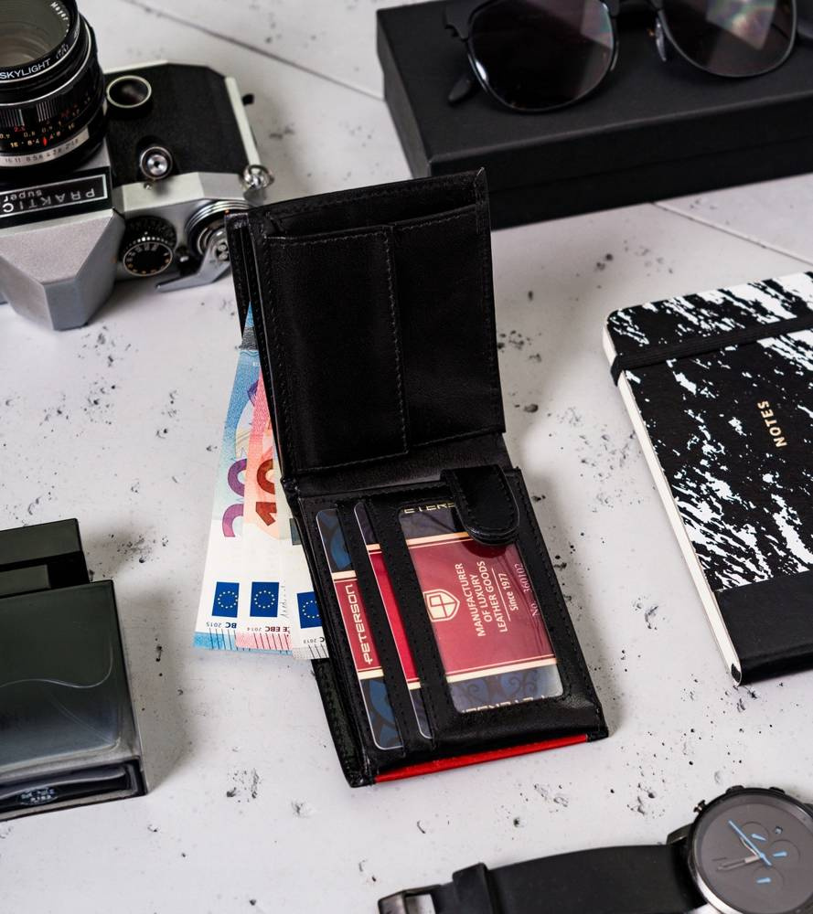 Malá, kožená pánská peněženka v horizontální orientaci s RFID systémem