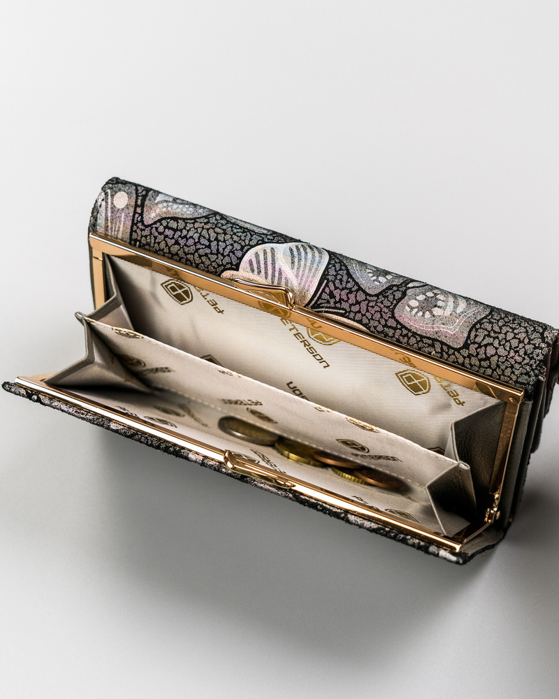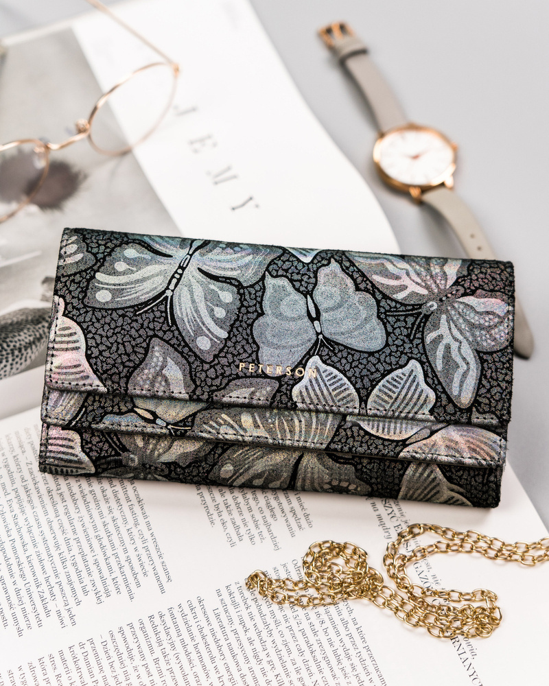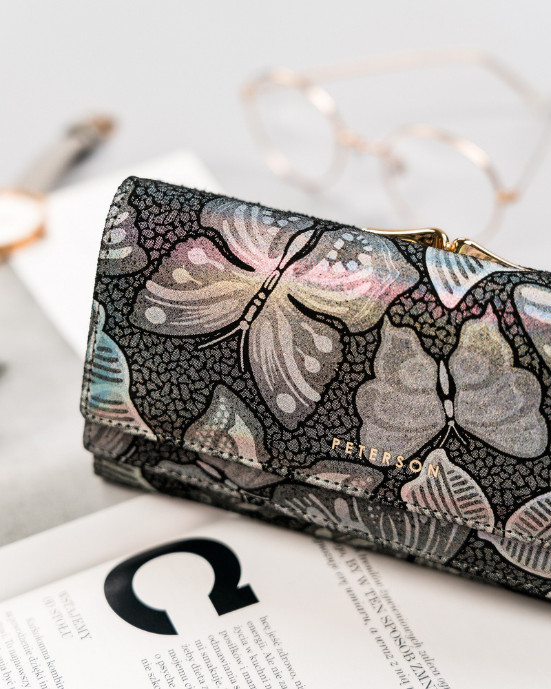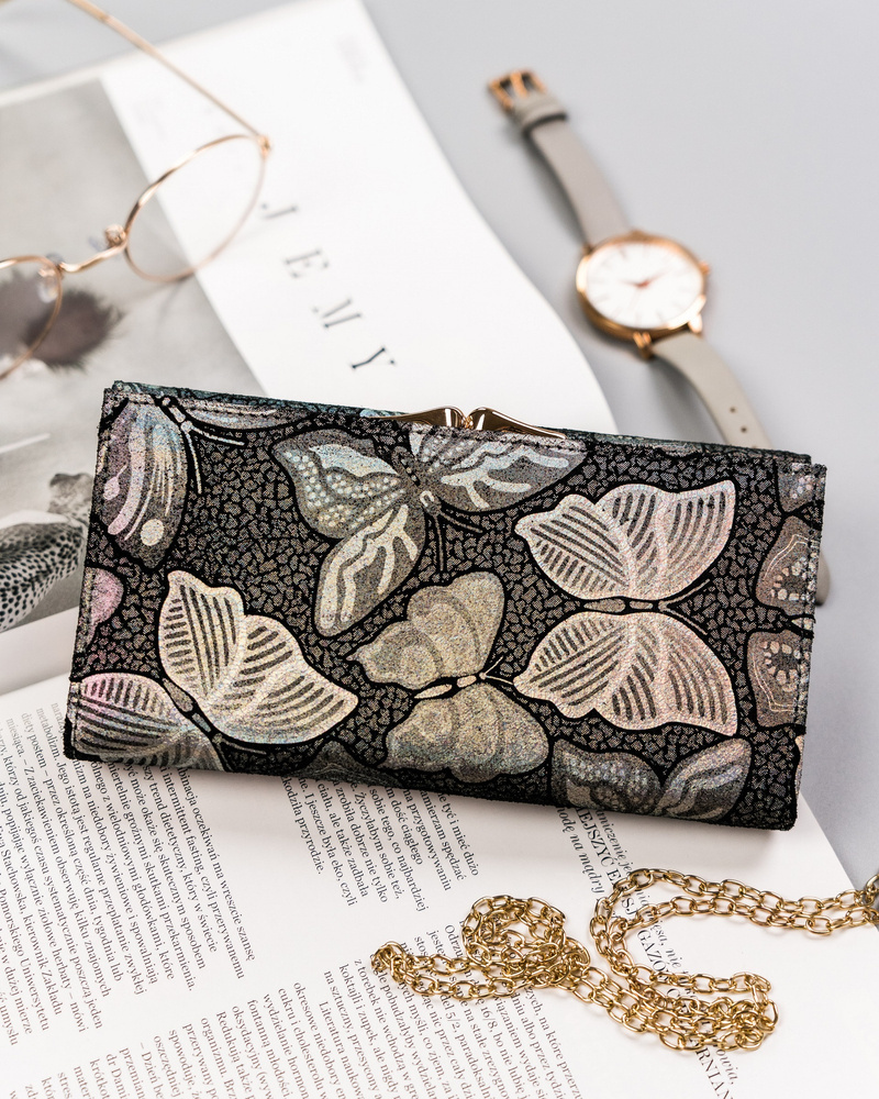 Velká, kožená dámská peněženka se zapínáním na karabinu
