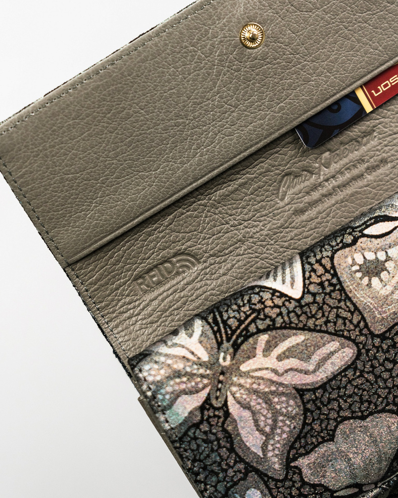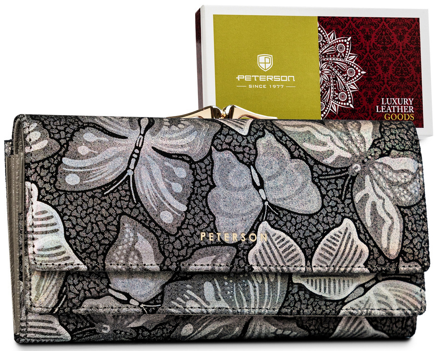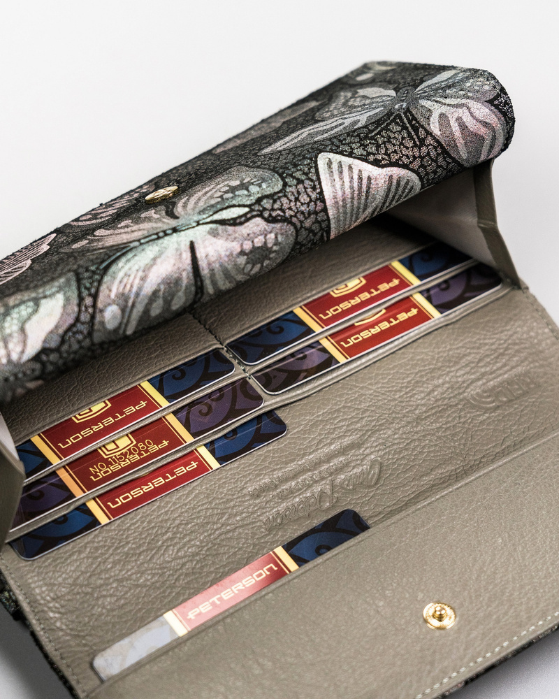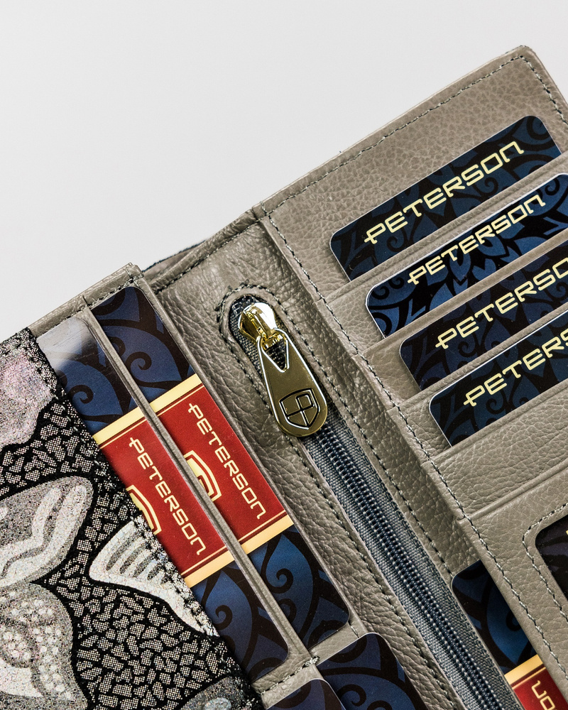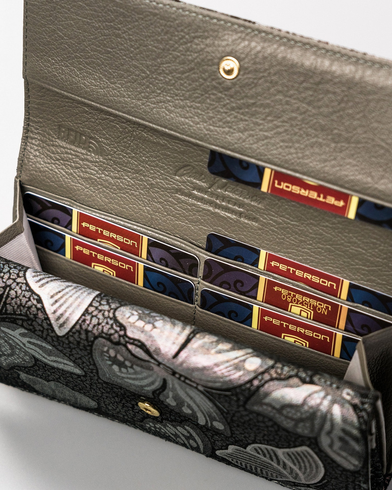 Velká, kožená dámská peněženka se zapínáním na karabinu