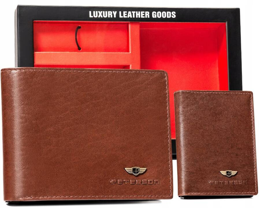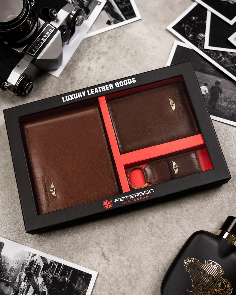 Dárková sada: elegantní kožená peněženka, pouzdro na karty a klíčenka