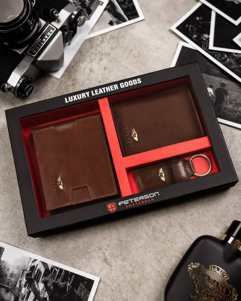 Dárková sada: pánská kožená peněženka, pouzdro a klíčenka