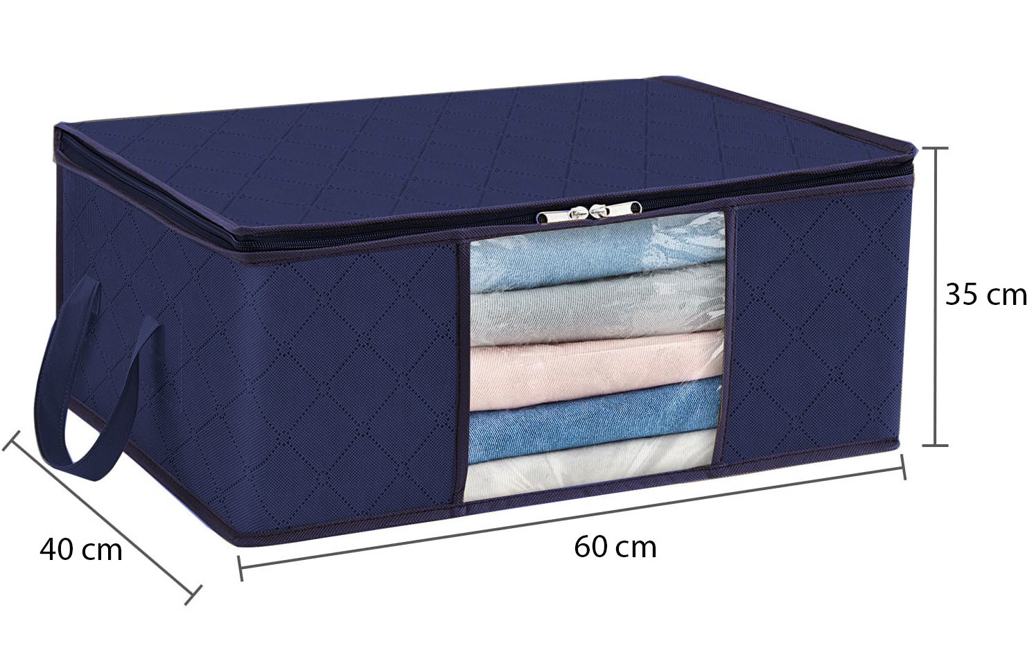 4x úložný box, úložný vak, organizér na oblečení, přikrývky, lůžkoviny, peřiny, BAGGI, tmavě modrá sada 4 ks.