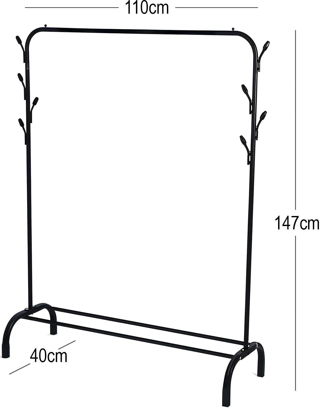 Věšák na oděvy, kovový, single, ROCKY I, černý