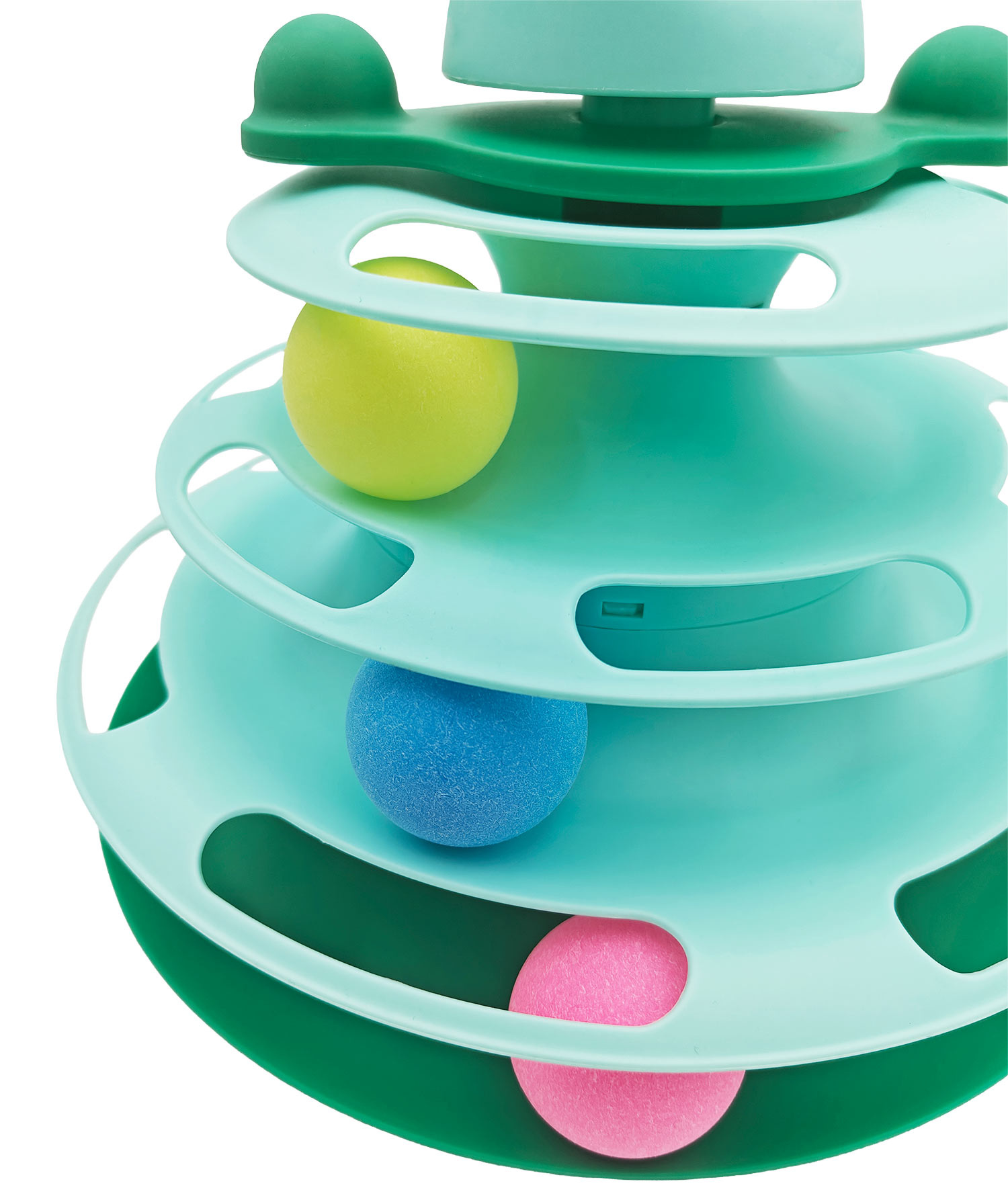 - Stimulace smyslů a loveckého instinktu Věž má 3 úrovně s barevnými pohyblivými míčky, které nikdy nevypadnou. V horní části je umístěn dekorativní pohyblivý prvek s pírkem na pružině - této atrakci vaše kočka neodolá!