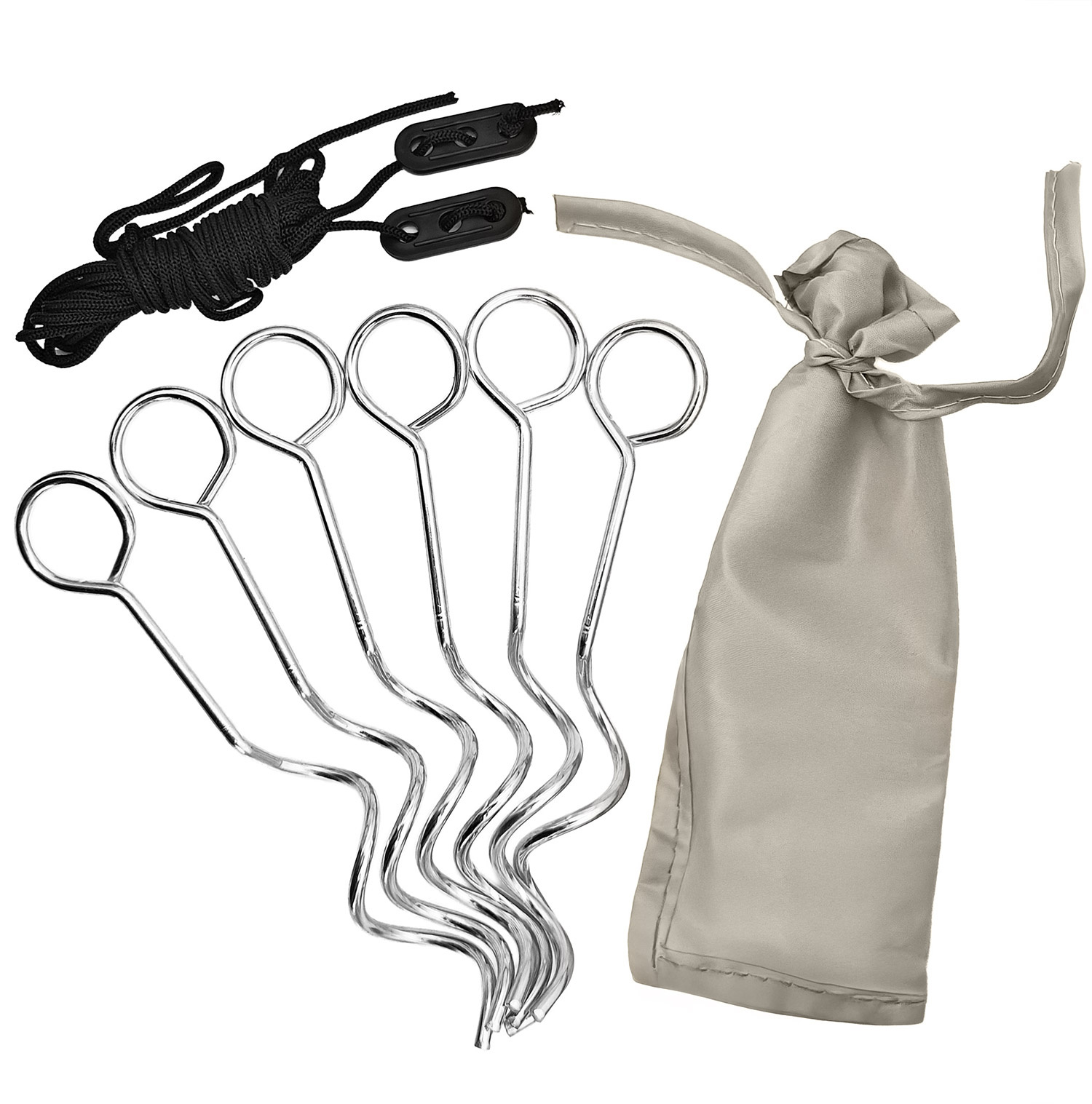 Speciálně navržené kolíky zajistí stabilitu stanu i při silném větru. Vše je uloženo ve speciálním sáčku. Sada zároveň obsahuje praktickou přepravní tašku se šňůrou, díky které lze složený stan pohodlně přenášet.