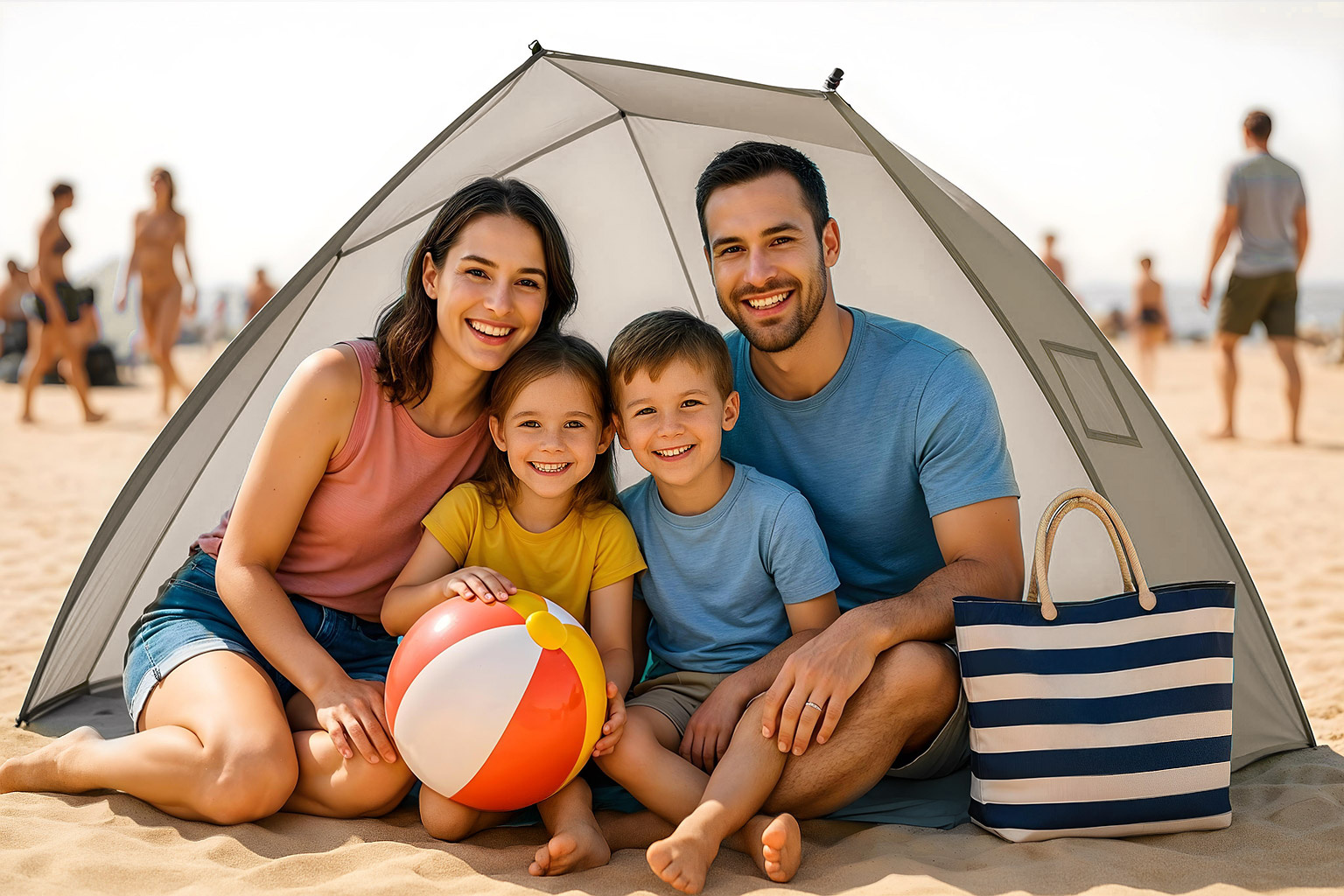 - Lehký a stabilní: Plážový stan je lehký a váží méně než kilogram, takže jeho přeprava není žádný problém. I přes svou nízkou hmotnost a polootevřenou konstrukci je však velmi stabilní.