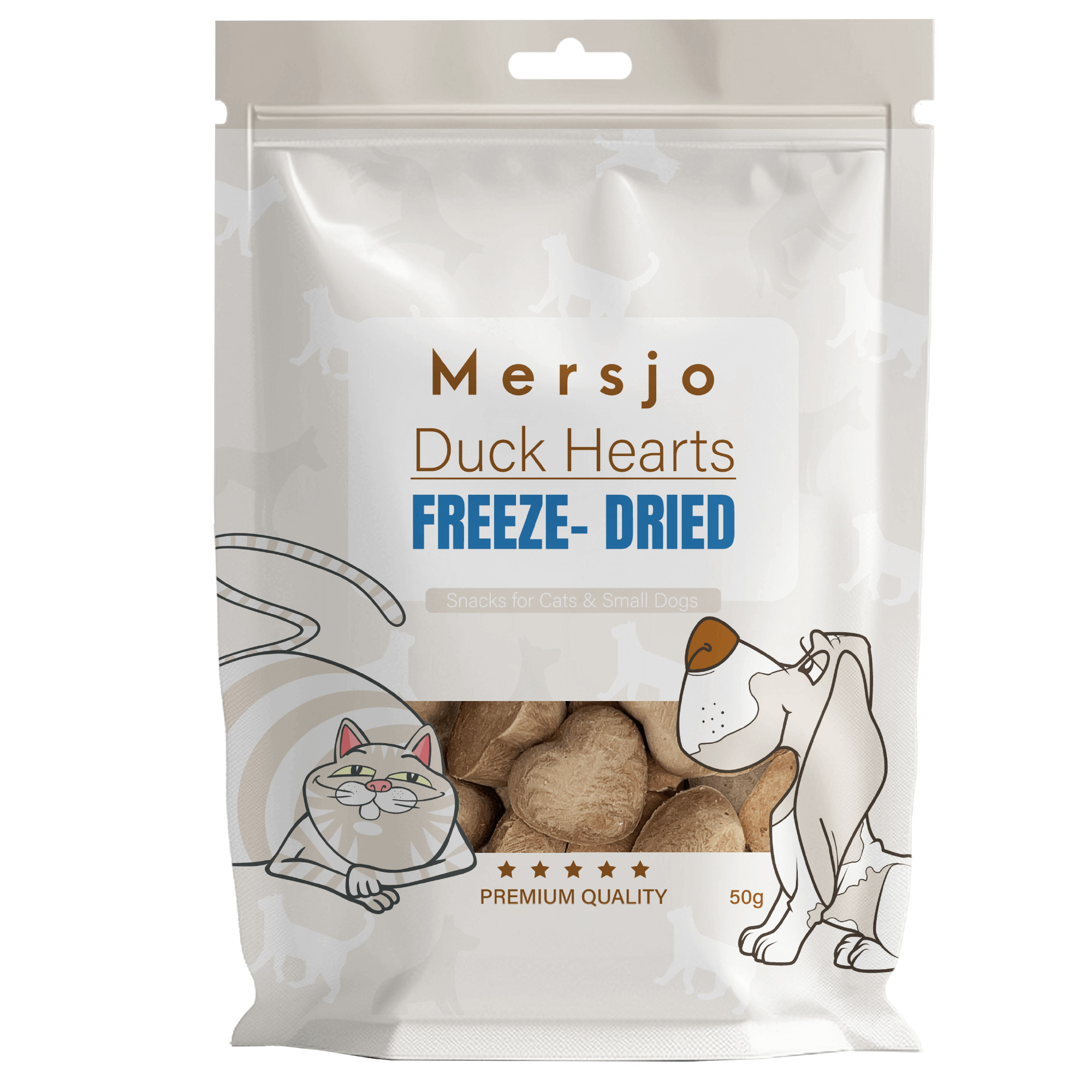 Pamlsek pro psy a kočky – Mrazem sušená kachní srdíčka Mersjo 50g